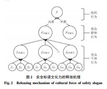 2) 安全标语是通过安全标语文化力来发挥作用的,安全标语文化力是安全标语文化总内驱力和外驱力的合力,其核心效用是保证组织安全价值观、理念落地扎根,进而使组织成员认同组织安全价值观、理念。
