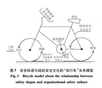 基于安全标语文化力的作用效应,构建安全标语与组织安全文化的“自行车”关系模型,见图 3。该“自行车”关系模型内涵极其丰富,具体内涵解释如下: